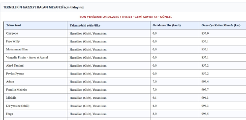 Anlık Durum : Sumud Filosu Nerede, Ne Zaman Gazze’de Olur? Özel sayfamız; filonun anlık konumunu, hızını, rotasını, Gazze’ye kalan yaklaşık mesafeyi tek ekranda gösterir. Devamı 24/09/2025